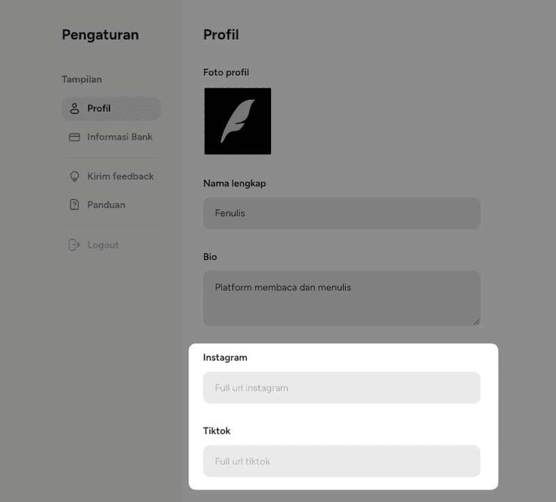 Sekarang kamu bisa memasukkan link sosial media kamu ❤️