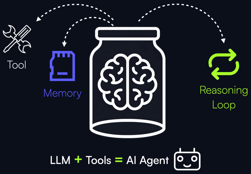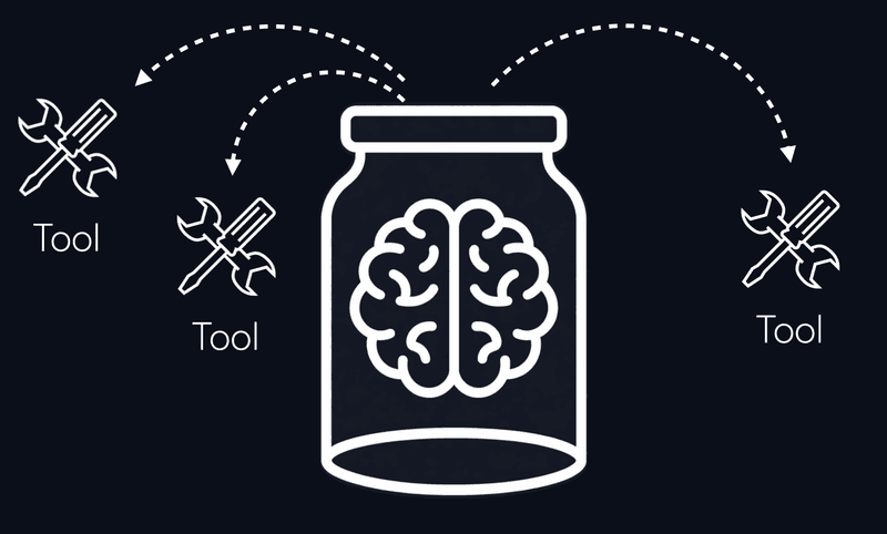 LLM tanpa agen layaknya AI dalam tempurung. Jago ngomong, pengetahuan luas, walaupun terbatas (cut off). Meski pintar menjawab pertanyaan kita, tapi LLM tidak bisa berbuat apa-apa, tidak bisa mengingat apapun dan tidak mampu memutuskan jika diberi pilihan. Tidak bisa membaca file, menulis file bahkan tidak tahu tanggal dan jam berapa saat ini.